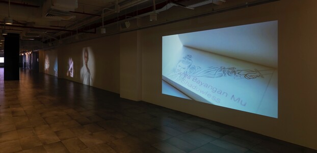 Intrigued and informed by the aforementioned episode, Boedi Widjaja’s Kang Ouw《侠客行》unfurls from a system of architectonic-numeral script devised by the artist. These graphical Chinese seal-type forms are presented as banners that line both ends of the Esplanade Tunnel and are shown together with a series of methodologically conceived videos, drawings and sound works that examine notions of space and place. Converging Widjaja's long-standing and personal interest in wuxia films—known as kang ouw amongst the Indonesian Chinese community—alongside text-as-image and codes-in-visuals, the works present layered mediations of various spheres of knowledge fuelled by the artist’s multicultural imagination and experiences.