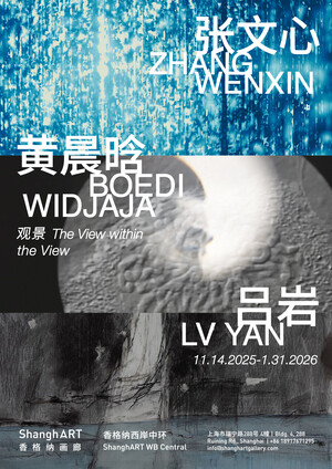 ShanghART WB Central is pleased to present solo exhibitions by Boedi Widjaja, Lv Yan, and Zhang Wenxin. This marks each artist's first solo presentation at ShanghART's space in Shanghai. The title The View within the View arises from an inversion of the Chinese term "Feng Jing (landscape)"; while the exhibition takes landscape as a thread, it by no means seeks to merely discuss any Spectacle. "Viewing" implies perception, comprehension, and exploration—the perspective of "the view within the view" carries and fuses personal or collective memories and experiences, and can itself be a sustained action. Though Boedi Widjaja, Lv Yan, and Zhang Wenxin each investigate certain kinds of landscape from distinctly different angles, their dialogues, flowing back and forth, converge toward a shared recognition of "the equality of all things." The exhibitions open on November 14 and continue through January 31, 2026.