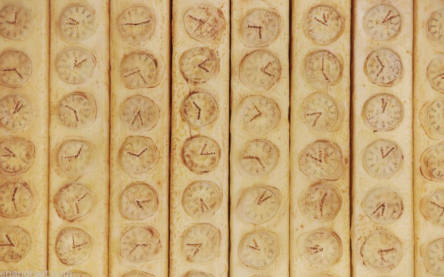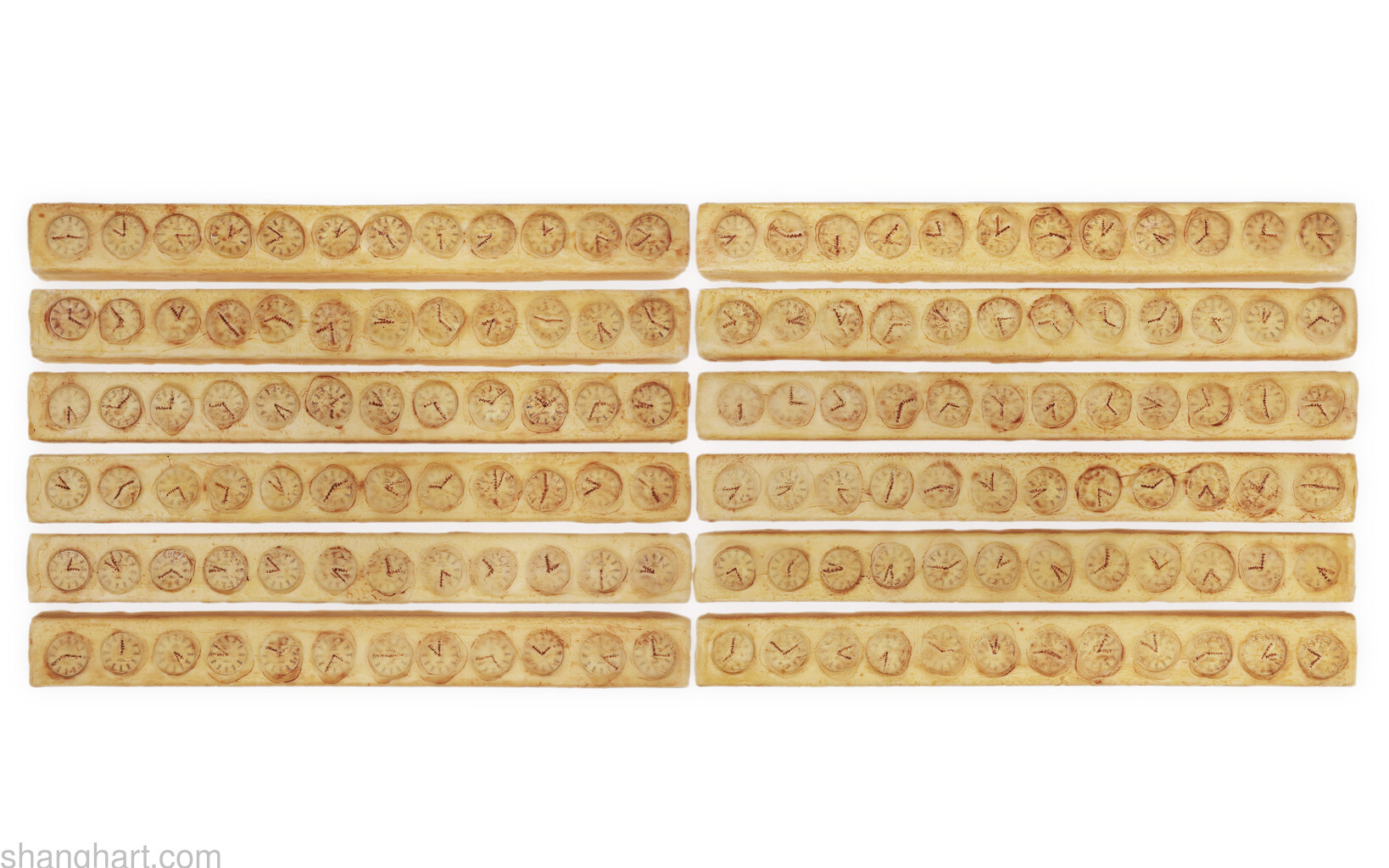 The clock faces set to multiple different times serve as a metaphor for life being fragmented into countless parallel schedules, each required to align precisely with specific checkpoints. These “timetables” include the social clock (e.g., the so-called optimal age for childbirth), the biological clock (e.g., forcing oneself not to stay up late), the work clock (e.g., submission deadlines), the personal life clock (e.g., planning ahead to catch a flight), and the cultural clock (e.g., the seventh day after a funeral, the stroke of midnight on New Year’s Eve), among many others. Yet “time” itself is a human invention, and the timetable is likewise a constructed device—one that fosters, in some individuals, a deep anxiety about time. A thousand seconds may sound like a long stretch, but it is in fact only a little over sixteen minutes—barely enough to accomplish much of anything.