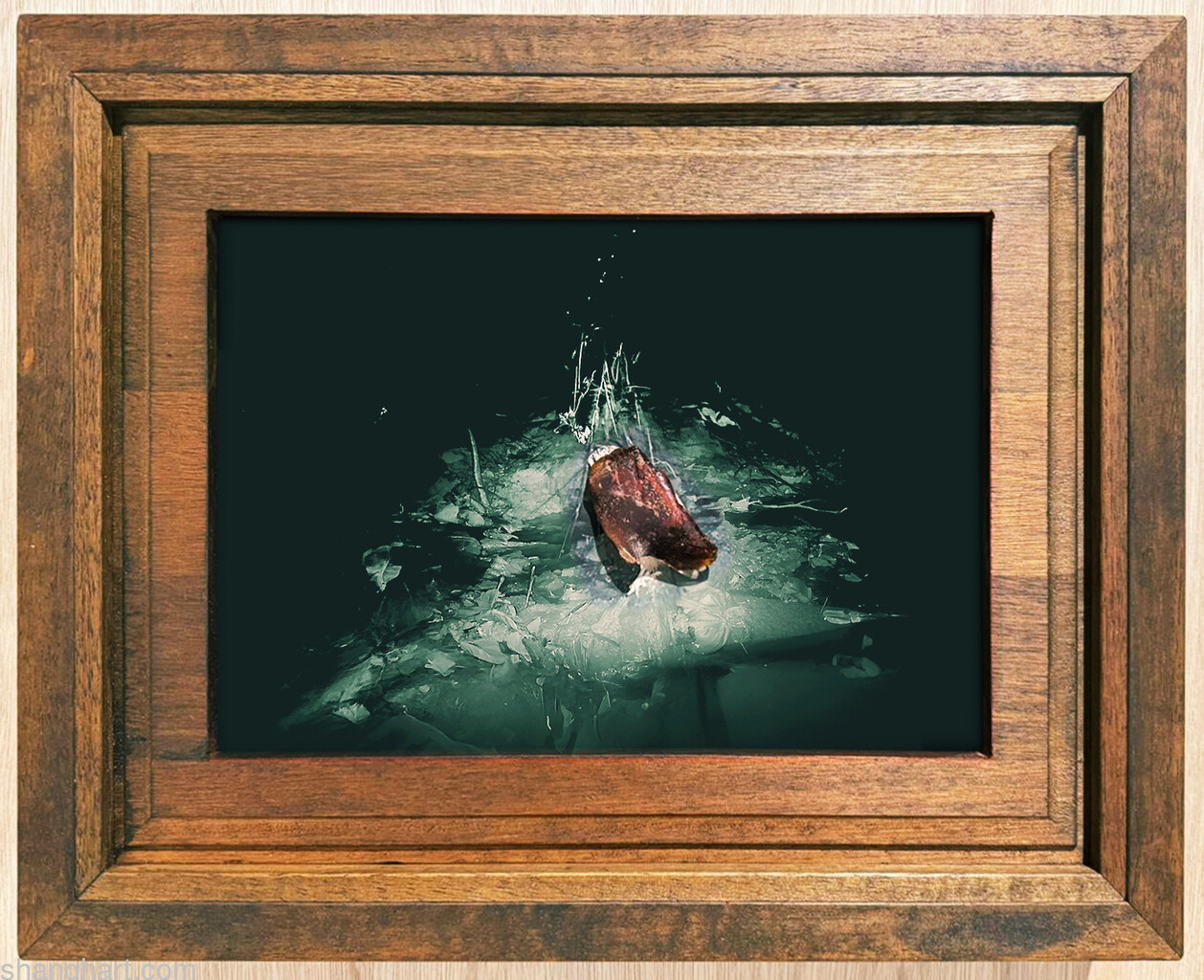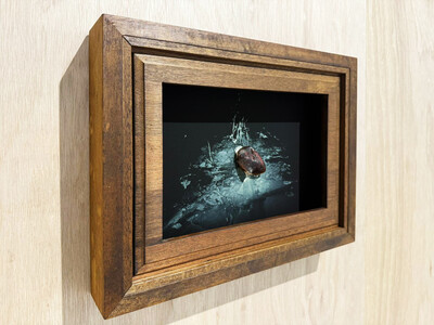 Archival digital print in wooden frame, with found object