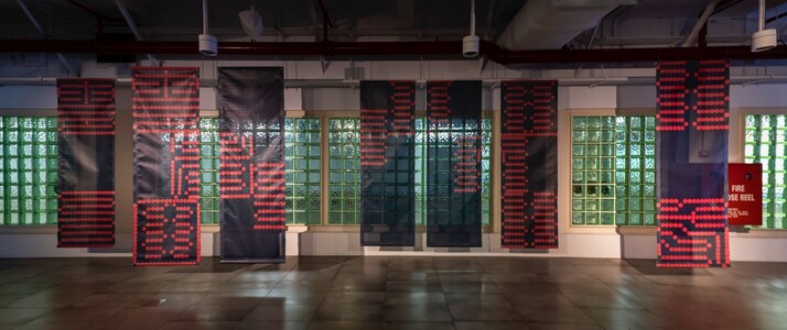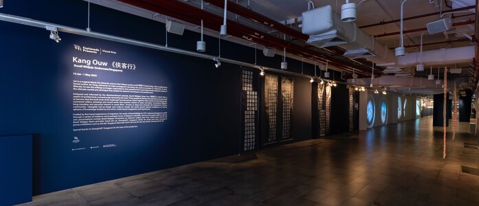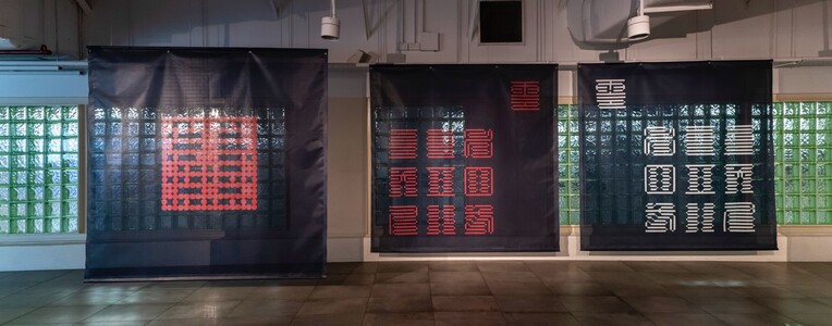 Intrigued and informed by the aforementioned episode, Boedi Widjaja’s Kang Ouw《侠客行》unfurls from a system of architectonic-numeral script devised by the artist. These graphical Chinese seal-type forms are presented as banners that line both ends of the Esplanade Tunnel and are shown together with a series of methodologically conceived videos, drawings and sound works that examine notions of space and place. Converging Widjaja's long-standing and personal interest in wuxia films—known as kang ouw amongst the Indonesian Chinese community—alongside text-as-image and codes-in-visuals, the works present layered mediations of various spheres of knowledge fuelled by the artist’s multicultural imagination and experiences.