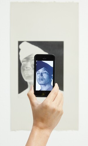 The exhibition looks at photographic imagery, and its impact in our remembering and re-forming of personal narratives. The process started with the artist drawing negative images of reportage photographs of Indonesian politics across a 30-year period, from its independence in 1945 through a period of transition of Soekarno’s National Independence to Soeharto’s New Order. The viewer is invited to use his/her mobile device, with invert settings turned on, to see the positive image. Shifting between the modality of drawing and photography, Boedi Widjaja reflects viscerally upon the imagery of his personal history, seeking agency.