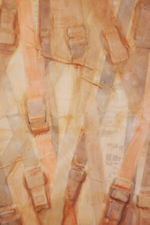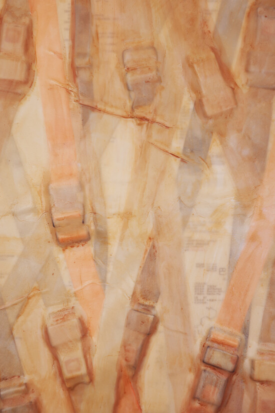 resin clay, acrylic, medicine instructions and safety belts on wood