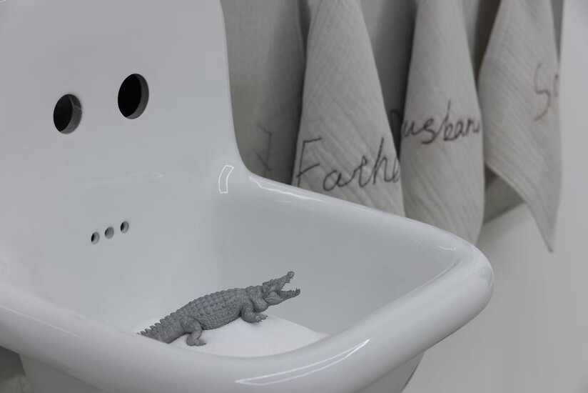 Ceramics, galvanized plate, stainless steel, cotton, embroidery, salt