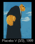 The airbrushed 'Placebos'are large hanging motorized scrolls. They automatically roll up and down to show different pictures when the viewers press a button. The first Placebos were successfully tested in Shanghai, October 99 ZHOU TIEHAI Living and working in Shanghai, China's most cosmopolitan city, Zhou Tiehai is not only active in the local art scene but also observes (and recently takes part in) the international art world (Cities on the Move, Venice Biennale 1999 etc). Zhou Tiehai works in a wide variety of media including painting, photography, video etc. to create his 'visualized strategies' (term used by Harald Szeemann on awarding the main CCAA prize - Contemporary Chinese Art Award -, to Zhou Tiehai in 1999). OTHER WORKS BY ZHOU TIEHAI: Artless (1999); Hurry up, Art History Isn't Waiting for You; You Are